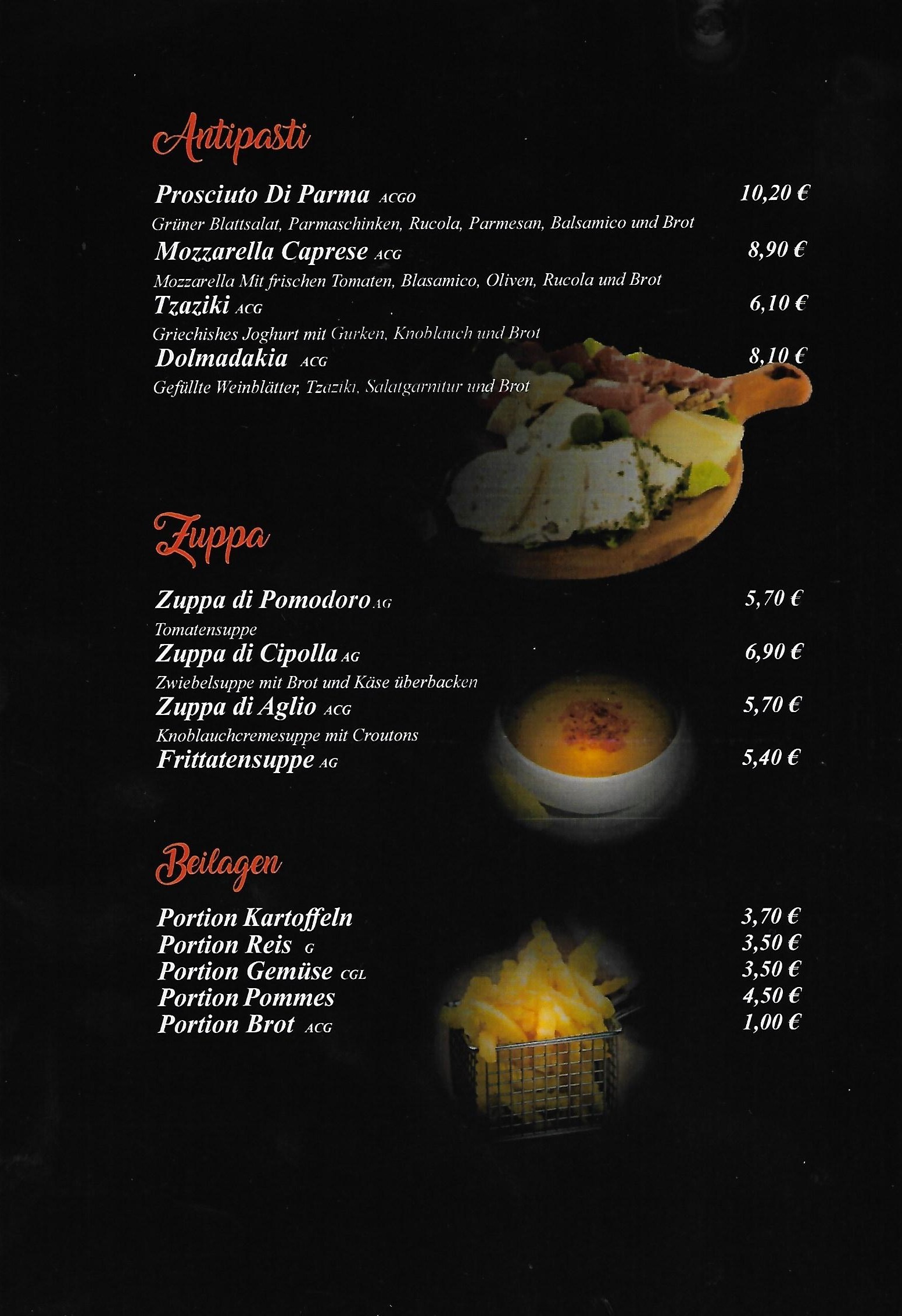 Unsere Speisekarte
